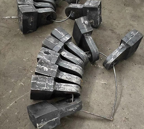 材質優化上,高錳鋼錘頭雖韌性好,但需足夠沖擊力觸發加工硬化才能發揮耐磨性。優化方案采用復合式結構,錘柄用45號碳鋼保證抗沖擊韌性,打擊端用高硬度合金提升耐磨性,實現“軟硬相間”,既延長壽命又降低破碎能耗。此外,高耐磨雙合金錘頭通過離心式壓力鑄造工藝,避免鑲嵌式易脫落問題,壽命達高錳鋼的5倍以上,粉碎率提升30%,顯著提高破碎比。